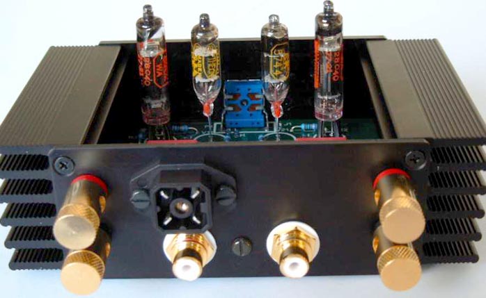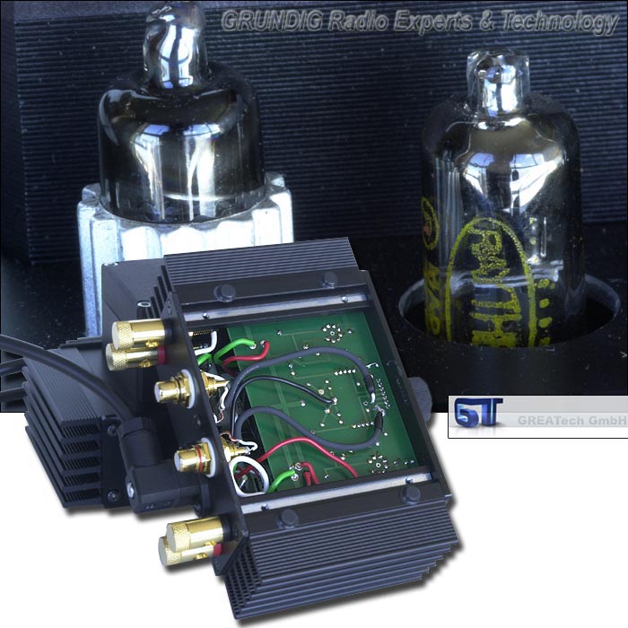 The amplifier is built around two types of subminiature tubes. Greatech uses the high-mu 5744 triode in the preamplifier section and the 5902 beam power pentode in the output stage. According to the manufacturer, the μVAC has an input impedance of 50Kohm and produces maximum output at 500mV. The German-issue output transformers deliver a maximum of 1 watt from the circuit. Greatech can build the amplifier for 4 or 8 ohms load impedance and there is a choice of 120 or 240 grid voltages. If you don't like the black faceplates, other colors may be ordered. The μVAC is fully hand-made in Germany and only available as a limited run of 250 pieces direct from the manufacturer. Subminiature tubes were designed during the Second World War when there was a need for rugged tubes to be used in artillery shells. A metal detector based on radio frequencies was placed inside the tip of the shell. The metal detector made the shell intelligent -- as far as any means of war can be intelligent -- and only exploded close to its metal target, not on impact. The tubes employed thus had to be of extreme ruggedness. They would be small, use heavy glass envelopes and no fixed pins that could break. Instead, these subminiature tubes were equipped with loose bare wires, which acted like shell shock absorbers in their original applications. |