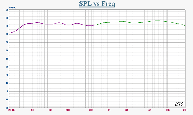 I asked Kim Neeper Rasmussen for an impedance vs. frequency plot to show load behavior for connected amplifiers. With the requested graphs, Kim sent the following comments: "Normally I don't do this since of course, you can always make a measurement look worse or better just by moving the microphone a few centimeters. The frequency response measurement was done in two steps. From 20kHz to 600Hz is a gated measurement. It is measured at 1 meter and 20 degrees off axis just above tweeter height. This is the vertical/horizontal angle from which the sound will reach the ears in an average setup. Below 600Hz down to 20Hz, the measurement was made at a half-meter distance without gating and smoothed to look closer at the nearfield curve of the drivers. I cannot plot the nearfield measurements into this curve and make it look realistic as there is a baffle-drop compensation in the crossover. Therefore, this doesn't look 100% as the measurement of the speaker would look in a gigantic anechoic chamber. The 20 - 600Hz level is around 1 to 1.5dB higher in reality but could not be cropped together as the end of the 600 - 20KHz slope was going downwards (600Hz is the end of what is possible to measure gated at one meter with a speaker of this height).