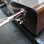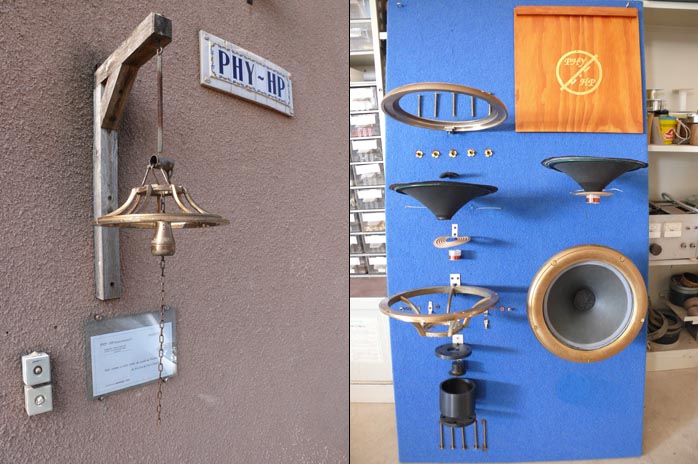 He has built the infamous wall, a slightly concave infinite baffle employing 18 tons of inert materials to which he bolts his drivers with a massive brass plate. This allows him to hear his raw transducers without cabinet colorations. |
