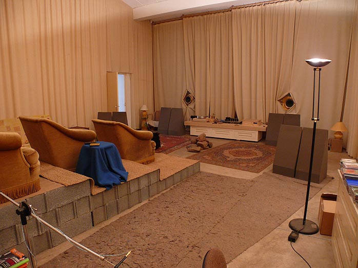Demonstrating the uselessness of extreme mass for damping, he played a French singer's track where the recording engineer hadn't compressed the bass. The walls of this large sand-filled concrete cave were vibrating. Merde! |