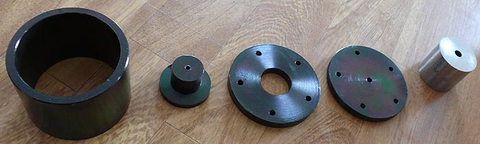 Salabert calls the discovery of MDI or Micro Discharge Interface distortion the only real advance hifi has seen over the last 40 years. And that discovery didn't even occur in hifi but government-funded major French research. Simplified, MDI deals with extremely steep high amplitude ultrasonic spikes which, in audio, become modified to resemble the sine wave component of the signal sufficiently to cause audible distortion by intermodulation. Additionally, MDI creates positive Langevin ions which change the air to less effectively support sound propagation. "Whether they knew why or not, the old Japanese who had water fountains in their listening rooms neutralized certain MDI side effects instinctively." Today, a negative ion generator could do the same. [Below, a PHY motor assembly with the Alnico core to the extreme right.] |