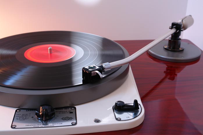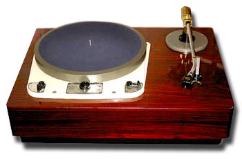 | EMT 927F The EMT 927 first appeared in the 1950s. 16" acetate records were still in use which accounts for the EMT's size and that 12" tone arm. The EMT tables were made for use in radio studios so were built to be used and abused. Their Hammertone finish was a strictly no-worse-for-wear choice. The 927 came with an in-built preamp and can play 33s, 45s, and 78s. It's an idler wheel drive just like the Garrard 301. If you haven't seen one in person, they really are a marvel of engineering and beautiful to behold. For more information and some great pics and history on the EMT turntables, check out Stefano Pasini's website (and if you really like what you see, buy his book. I did). |