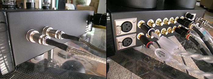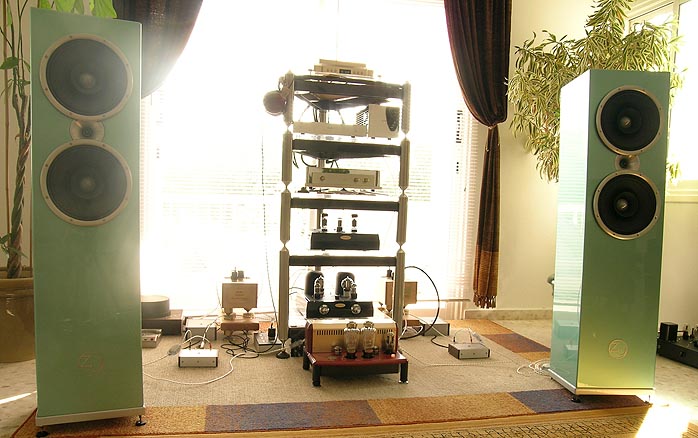 | The special merit of the Cabernet Dual resides in not only introducing this liberated breath or flow to the music but to not sacrifice hard-hitting attacks in turn. This must be qualified by my particular speakers not inserting a crossover until about 40Hz. The 101D-covered spectrum of the crossover-less front array extends beyond 35Hz. That means the power band of bass and midbass is still driven from the direct-heated triodes. Ideally, you'd want speakers whose woofer artillery covered at least the two bottom octaves. That would take full advantage of the 6SN7 bass circuit. On the phenomenal semi-symphonic Sur album by Spanish pianist Dorantes [EMI 7243 538417 2 0], the Flamenco-styled chordal piano percussion on "A ritmo de berza" perhaps wasn't quite as hard-hitting as over the Wyetech preamp. Yet the subliminal rubato factor in the lyrical passages -- what I earlier called the inner movement -- | |||||||||||||