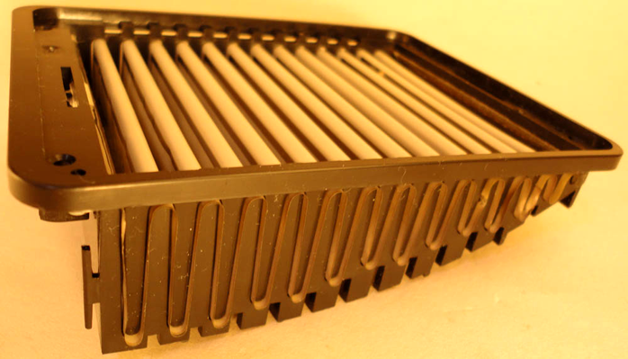 "In the Heil driver's basic composition, the pleat isn't fixed though there are fixed examples based on easier manufacture. We fold our film with our vibration board, a square frame which supports the folds from the lateral edges for sonic stability and ease of fabrication. The Batpure unit on the other hand doesn't fix the foil's side edges. That's because for bass it's necessary to increase the pleat size. For very high frequencies like in the Batpure one must use a very shallow pleat instead. Hence the Batpure is shaped like a shoal wave."
