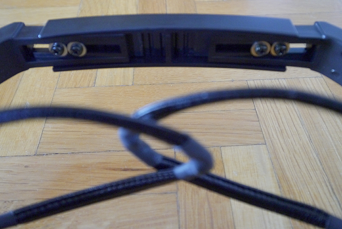 In the flesh—or hard plastic as it were—the H2+ exuded absolutely nothing of the luxurious build quality of a current Audeze or Sennheiser's now older HD800. Whilst the 'wings' were an obvious nod at audiotechnica, their execution was outright flimsy by contrast. Think basic wire loops with leather sleeves terminated in shrink wrap. The plastic bridge sported four screws to adjust width. That's a vital provision for comfort since the ear cups themselves barely swivel whilst the overall contraption affords very little give to offset the contact pressure of the narrowest setting. Then there was the hardness of the leather-clad pads and their bizarre geometry with deliberate air gaps in the front and downward.