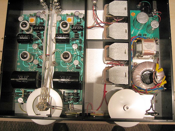 | Tricker isn't merely one of the UK's foremost experts on valve amplification. Having started out in the communications industry (hence the 5687 in the line stage), he knows a great deal more than most about electronics in general. What's immediately obvious from even a cursory glance at any of Tron's innards is that he has great respect for the signal and how it flows naturally through the various stages of amplification. Tricker never stresses components. His philosophy is all about letting them operate at ease and unperturbed by even the smallest of interferences. This translates directly into a natural flow of music. Kondo, Lamm, Conrad Johnson and Canary (to name just a few) all work with some of these same criteria but to my ears, Tron is one of the more successful not just because the primacy of musical flow is achieved naturally. It's even more so because while all the | ||||||||||