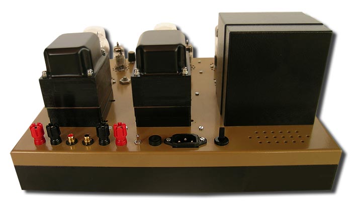 Dispatched without factory packaging or owner's manual; with a handwritten "Triode Spirit AC/DC 45" label on the back and tiny AC/DC labels next to the top panel switch of equivalent functionality; with no instructions on what the two knobs in the front were for nor the silver toggle in the back next to the power mains; my initial impressions weren't of 100% enthusiasm for Mr. Ming Su's style of preparing for his first formal review in the US press. But a subsequent e-mail explained that the two frontal controls are attenuators in case the amp is run source-direct. The small silver toggle in the rear is a ground lift and the screws between the 45s aren't bias current trimmers (the amp is self-biasing) but hum pots, to be adjusted by ear depending on what 45 type is run (Full Music, Emission Labs, NOS).