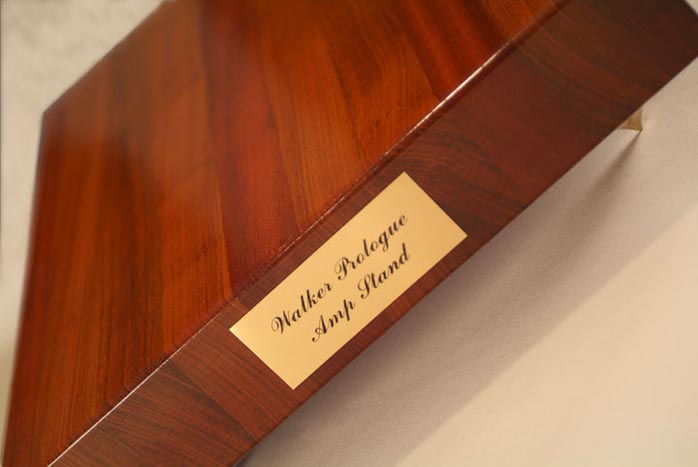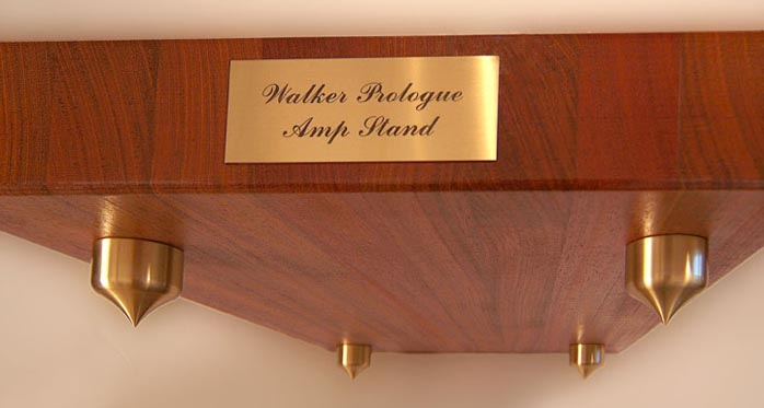 "I use different densities of the wood, with the grain turned in different directions to achieve the resonance control I want. I don't like one solid piece of wood because it is connected from one end to the other, vibration-wise; whereas in this type of construction, it is not." Additionally, Lloyd prefers mass. At about 70 pounds, this sucker is heavy. "I much prefer mass, you can tell, on everything because everything vibrates. If something is light and it vibrates, it has to also vibrate whatever it is sitting on. Even the earth itself vibrates, never mind the sound fields in your room. Mass gives it something strong and stable. With the type of assembly we use here, reflective vibrations back and forth are eliminated; anything remaining is damped with resonance control disks. In fact, it comes with one in the standard package and the Valid Points are actually screwed into the wood almost all the way through to get a good grip on the internal vibrations from top to bottom." The standard version comes with four valid points coupling the stand to the floor and one resonance control disc for the stand; the reference version adds an additional set of Valid Points for the amp and five additional resonance control discs for the amp. Construction "Tweaker" doesn't begin to describe Lloyd Walker. The Prologue is the final iteration of about twenty different test designs including horizontal and vertical lamination, particle boards and different types of wood, culminating in the current design. Originally the stand was developed using Rock Maple but Walker's new wood of choice, Jatoba, is even harder and denser than Rock Maple. So hard in fact that Walker snapped multiple steel taps during the construction of these stands. The Janka hardness test measures the force required to embed a .444 inch steel ball to half its diameter in wood. Black Walnut measures 1010, Hard Maple at 1450, Mahogany at 2200 and Walker's Jatoba (Brazilian Cherry) an impressive 2350. It is over twice as hard as Maple and 50% harder than Mahogany. If Walker's correlation between hardness and audible improvements is correct, then based on this scale, Jatoba should be a good choice. As to the finish, the deep lustrous Cherry is off the charts with the look of fine furniture. The WAF doesn't get higher than this. One would assume poly finish or possibly lacquer. Bu Lloyd points out that sliding amps and Valid Points on and off the stand would ultimately cause scratches no matter how careful one is. "With poly, you're in trouble. You've got sanding and work. With six coats of hand-rubbed tongue oil, most minor scratches are easily repaired with Liquid Gold." Lloyd bristles when asked if he was designing for a certain sound. "I was looking for neutrality. I was not looking to create some artificial harmonic vibrations to make the sound in a bad-sounding system or with a bad CD sweeter. If you do that, you just reverse yourself. When you have a good CD or a good LP, it'll sound bad." I had inadvertently piqued a major pet peeve of Walker's - components and accessories that make bad-sounding equipment and recordings sound good. Walker continued by complaining of reviewers coming to his sound rooms at shows. They would state that the sound was excellent but then insist on hearing a bad recording. "Why bother and drive all the other people out of my room? If it's no good, why listen to it in the first place? I want to hear what's on the recording, I don't want to color it. Put on a bad recording and it should sound bad." Walker's design goal for the Prologue was to eliminate vibrations and prevent the addition of resonant interfaces which would color the sound, and which in turn could make a good recording sound bad. |