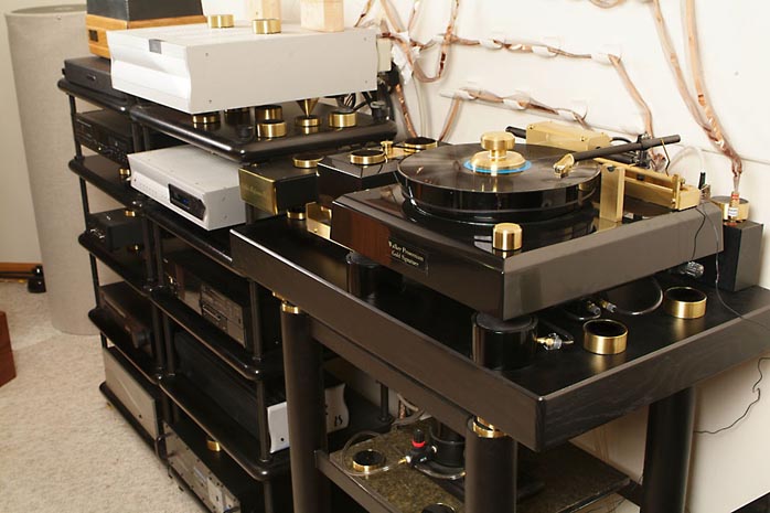 The journey With the purchase of the Linn turntable some twenty years ago, I began my foray into -- and sometimes out of -- vibration control. Linn spurred a debate as to the sonic impact of the player's stand. It was somewhat revolutionary at that time because most of us were happily putting our turntables on a convenient table or shelf, certainly with none of the sophistication of today's solutions. If my memory cells are up to speed, the Linn sound varied with the rigidity of the stand, with many arguing that a flimsy support sounded best. The Linn was and is an excellent table and sure enough, the stand it was put on did make an audible difference. That started a seemingly endless parade of stands, racks and devices all claiming to eliminate, modify or dampen vibrations. I went through most of the flavors of the month - air, sand, hard and soft and they all made a change. But the changes were not uniform, consistent and reliable. Some shifted the tonal characteristics, some worked well with a CD player but not with a preamp. Only a few consistently improved the sound of amplifiers. That was up until the Zoethecus. They were the first to offer a consistent and uniform improvement no matter what the amp. From the massive Levinson 34hs to the tube-laden Tenor 75s, the Zoethecus stand improved clarity, definition and detail. It had an uncanny ability to snap the soundstage into focus and to add a consistent clarity to the presentation. Yes, solid-state amps at times sounded slightly cooler but the benefits always outweighed the shortcomings. Those stands clearly, consistently and uniformly improved the sound of any amp in my arsenal, tube or transistor. I sometimes wondered if there was a reduction in warmth with the Zoethecus or whether I was reacting to the increase of detail but no matter, I was happy for a long time. In my mind that problem was solved and I could tackle real audio problems like speakers or amps. So there I sat for many years completely contented with my Zoethecus and somewhat oblivious to the alternatives. |