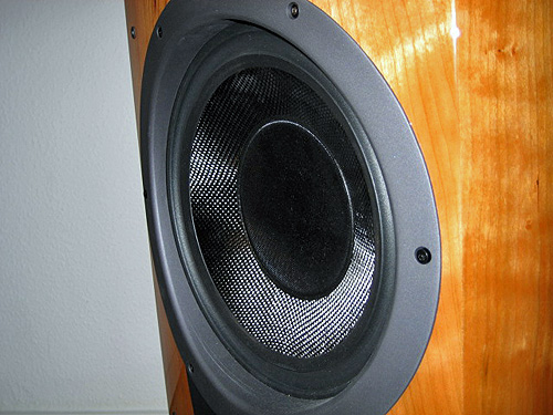 Due to the horn-shaped well, there's improved dispersion. Properly engineered wave guides create constant directivity. Regardless of toe-in relative to the listening seat, the covered bandwidth exhibits linear response, merely showing expected off-axis attenuation. We won't have to get too technical but should still mention that behind the actual diaphragm, there's a 'solid wall' of equal diameter, hence one may apply more external probing pressure on this driver without causing the usual deformation. (Under no circumstances attempt the same with the tweeter however...) |