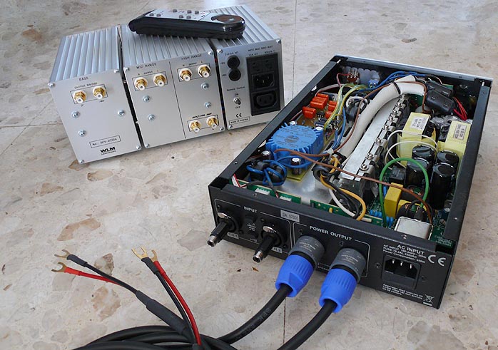 | WLM's new Duo amp with its inbuilt 80Hz low-bass filter, bass EQ and dual-mono level controls wedded to the 2-way System Control IV can henceforth replace the more complex Sys V version of the electronic brain in many applications. If you never meant to go subwoofing but listen to your WLM speakers full range, you didn't need System Control V. Just so and anticipating future bass lust, WLM had always outfitted their modular Sys IV with a prewired card slot. One could thus add Sys V subwoofer functionality later. Because System Control IV + Duo amp equals the functionality of System Control V, Sys IV now accommodates 3-way use. However, you couldn't change bass amplifiers later unless they too were equipped with their own low-pass filter and gain control. Enter self interest. I already owned a Duo 12 with the older Class A/B Alto Mac 2.2 bass amp. I wanted to upgrade to the new Class D Duo amp whose absence of forced-air fan cooling would make for completely silent operation, something I'm a stickler on. For this review, WLM thus only needed to send the System Control IV with my new amp. My older Duo sub had the bridged Alto Mac 2.2 amp drive its twin woofers paralleled and in mono, from a single binding post pair. The new Class D Duo amp cannot be bridged. Hence going forward, Duo subwoofers are stereofied, with each woofer wired to its own terminals for discrete l/r-channel bass from a single enclosure. I thus also ordered a new biwire terminal plate for my Duo 12 and rewired it for the new amp (which, WLM is happy to admit, is once again sourced from Alto as their A500.2 Dragonfly 2 x 480w/4-ohm unit but subsequently rather modified in Austria and outfitted with WLM's own face plate, filter, EQ circuit and controls). |
