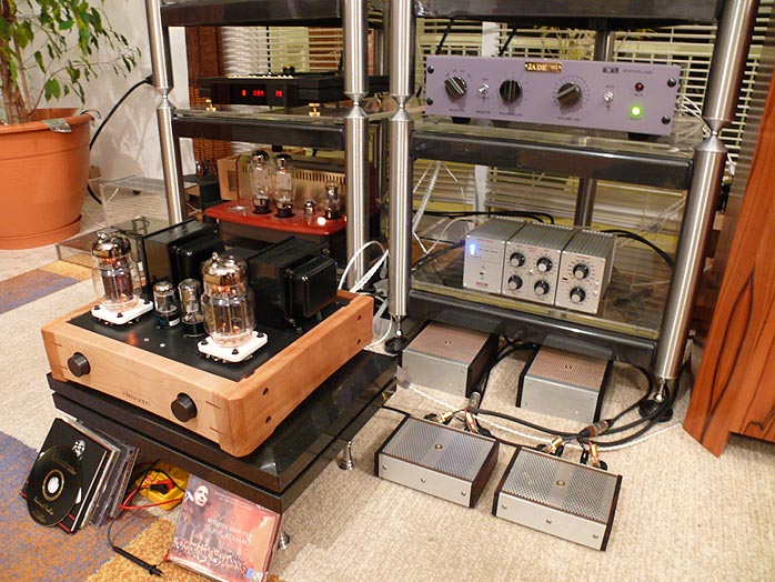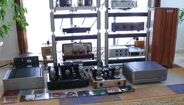 Brainwashing Pointing at his Studer A80 below or machines like the Cello Palette, Manley Massive Passive or EAR 825Q, Frick doesn't get naysayers who wield signal purity as though such machines violated it. He knows he can make even lesser electronics and rooms sound good when empowered with his own flexible adjustments. As recounted earlier though, even many of his own dealers don't embrace active drive and compensation circuity. Due to prevailing audio experts, such features remain decidedly audiophile-unapproved. Why retrain your customers who have formed strong beliefs which one can sell to with far less effort? Enter the demo - or A/B comparison in our case. Would active drive sell itself? For an even-handed comparison, amplification would remain identical, possible because my main amps were integrateds (or quasi integrateds with passive attenuators) to offset the gain disparity between tweeter and mid/bass amps. |