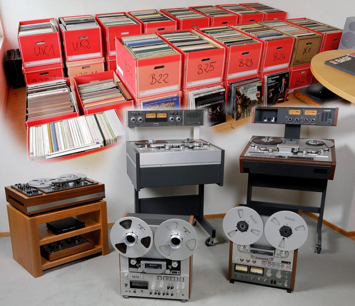 To allow commentary on new versus old bass amp -- and to also run yet other amps on the subwoofer -- WLM did send the more complex System Control V after all. Bypassing its bass output, the new Duo amp would run straight off the second output of my preamp. Using Sys V's bass feed, I could run any stereo bass amp in my arsenal to critique the new Class D amp not merely vis-à-vis the older Alto model but also against high-end muscle amps (of which, incidentally, I had some exceptionally brute but refined specimens enroute for another review assignment). One audio myth proclaims pro-arena amps like Crowns unfit for bass duty in the home. Golden ears state the superiority of class A amps from the bona fide hifi sector. Needless to say, WLM considers this a myth in dire need of two black eyes. Not invested in the subject -- except to prefer less expensive to more expensive solutions if they do the job as well or better -- I signed on for adding an American-style bass amp shootout to this final chapter in the WLM saga. [As the above photo shows, Hannes Frick is no stranger to shoot outs though he's clearly a polygamist at heart - and one with a well-stocked vinyl and tape inventory.] |