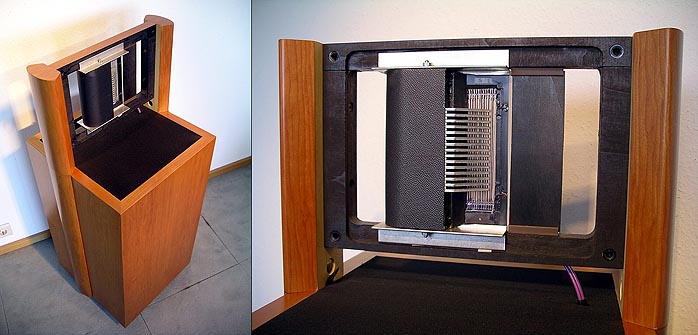Treble The SuperPAC is rather more than a conventional tweeter when you consider its low 800Hz crossover transition. That's far from a brickwall filter but creates diminished output significantly lower still, easily appreciated in active mode when you mute the mid/bass amp. What's more, the SuperPAC's dispersion pattern and phase behavior, once aligned as instructed, give center fill, holography and layering new meaning. Besides the obvious -- large-scale symphonic -- this is particularly fascinating on artificially crafted soundstages by studio mavens like Mercan Dede who very deliberately people their stage with 'extrasensory elements' (call them soundtrack tricks) which wouldn't occur on regular live stages. The extent to which even very tiny effects now reveal their precise location and character (or movement and phase trickery) as well as microdynamic transient and decay action is quite astounding. Powerful proof that this dimensional accuracy wasn't imaginary occurred each time I sat behind my Samsung computer monitor which faces me against the left long wall of the listening room. Though this puts me in line with the left speaker and thus massively off axis with the right (never mind significantly closer to the former), the soundstage, while slightly skewed to the left, still remained surprisingly stable between these WLMs. Though not quite an omni effect, it also lacked the somewhat diffuse focus of true omnis. In short, SuperPAC action is rather akin to an otherwise non-existent ultra-focus omni. It's not a completely accurate descriptor but close enough to convey the impression of gargantuan staging with superior image specificity and a very wide, stable sweet spot. The quality of the treble is ultra smooth, dynamic and supremely informative all at once. By comparison, the Diva Range tweeter is slightly coarse and the Zu treble (which enters fully at 12kHz) far less resolved. [Interestingly, Frick also loves Oscar Heil's original dipole AMT though he feels that, in his Kithara shown above, the transition to the bass wasn't fully realized. He further admires the mbl 101 for its top end despite a potential for getting steely and hard. The connection is clear - wide-dispersion high frequencies of superior speed are a WLM obsession.] |
