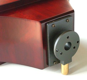 One glance around the back eliminates the "apparently" (boxy that was). There's no back. It turns the YS-500 into a modified open baffle instead. The laminated and calibrated solid Cherry horn quite literally squares another circle, beginning as it does with a round throat that smoothly transfigures into a flared rectangular mouth.