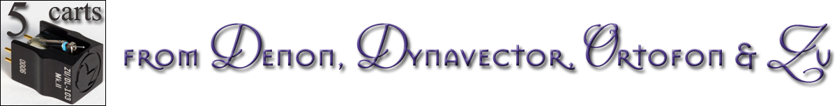Review components retail: Zu-DL103 MkII ($439 to $819, $439 as reviewed), Dynavector 10x5 mk5 ($550), Ortofon Quintet Black ($999), Denon DL103 ($229), Dynavector 20X2L ($950), Dynavector XX2 ($1'995)