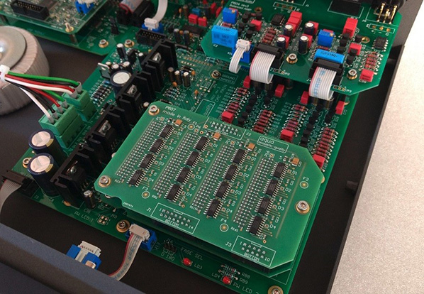 For customers of AQ's entry-level La Voce model, this year's launch of the S3 boards and modifications mean that existing units running on the original BurrBrown PCM 1704K dual-mono chips can be upgraded to fully discrete in-house designed R2R operation. Enter the new P608 FPGA/decoder board; the new P607 R2R ladder board [right]; the new P901 USB board recoded with new firmware; hardware mods to the main P601 board; and hardware mods to the I²S/USB board P603.