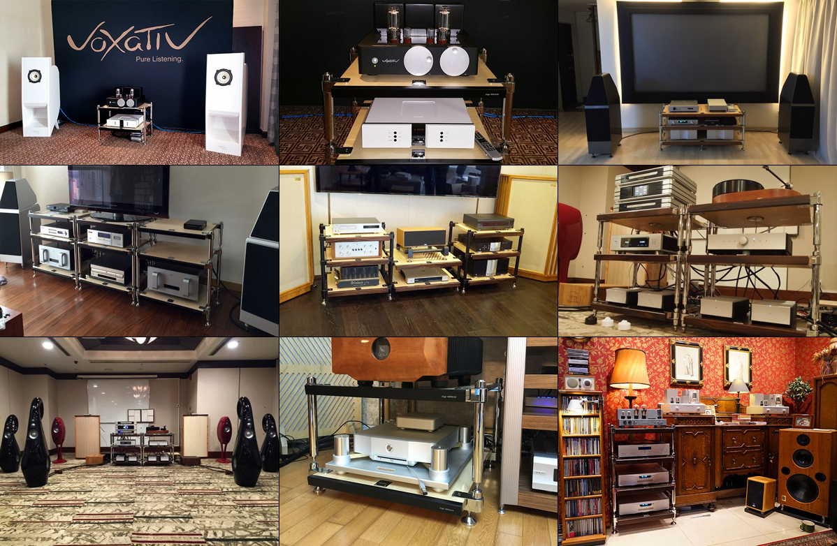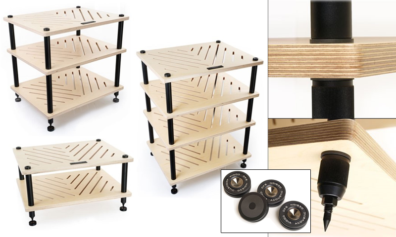 Resonance Control: Solid Tech, EquaRack Footers, Weizhi Precision Gold Glory footers, Boston Audio TuneBlock2 footers, Audio Exklusiv Silent Plugs, Audio Exklusiv d.C.d. Base & d.C.d. Footers, Superspikes, CA Electronics Standard Cones, Feet, Cable Clamps, Isoacoustics L8R130, Aperta and L8R200 SUB speaker stands