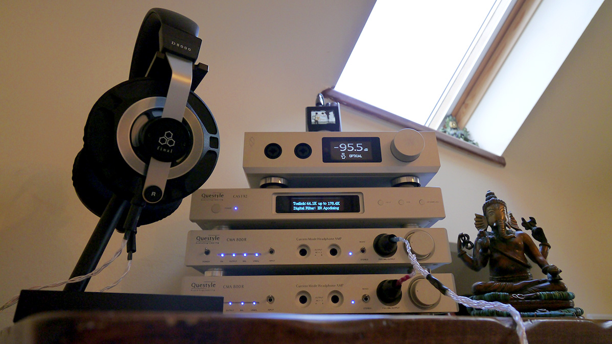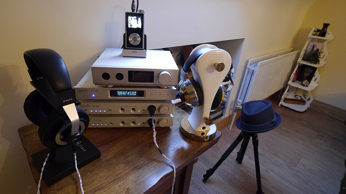 Against Susvara. On tonal balance and linearity, this was a surprisingly tight race. I said surprising because Susvara is the most 'electrostatic' of planars I've yet heard: fast, lean, lucid, transparent and slightly cool. The key differences were more broadband weightiness and density for the Final versus wider airier staging for the HifiMan. Whilst seriously less efficient, on potent amps like the mono Questyles or Bakoon AMP-12R, Susvara is capable of very powerful low bass. Here it kept pace with the clearly capable Japanese. Its wider staging and even more open treble simply conveyed an impression of greater speed and less fullness. The Final felt slightly slower but also fuller. Just so, unlike the Audeze, this juxtaposition didn't call the D8000 intrinsically more coloured or compressed. Returning to the earlier splitting of the bill then, this showed how the D8000 didn't sit halfway between the LCD and Susvara. It sat a lot closer to the HifiMan aesthetic. Physically of course, Susvara is lighter but financially nearly double to become a real heavy. Then it requires a properly powerful amp where the D8000 will plug straight into the Questyle QP-1R portable below. Given something of Questyle or COS Engineering calibre and this particular balanced cable from Portland's Ken Ball, I was frankly a little taken aback by how essentially on par these two statement headphones behaved. Yes there were minor differences but nothing of the delta which had played out against the Audeze. This segued straight into my biggest curiosity. How would the D8000 fare against the stablemate Sonorous X on the very same balanced cable and Questyle electronics stack?