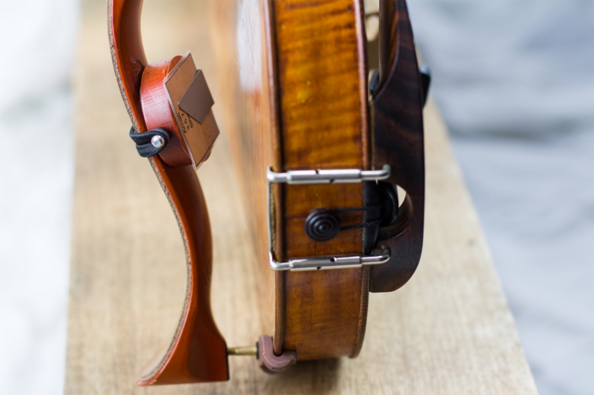 Spatium violin tuner fixed to the shoulder rest.