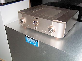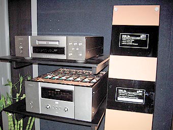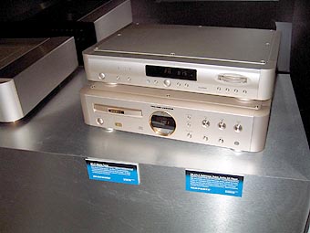 | #8: Marantz was showing bona fide HighEnd gear with exquisite satin finishes. The ST-17 stereo tuner [$749] atop the SA14v2 Reference SACD player [$3,00], the MA-9S1 Reference mono amplifier [$7,500] and SC-7S1 stereo preamplifier [$7,500] presented the best-looking range of Japanese high-end separates for my eyes, closely followed by some prototypes from Denon (the DVD-1x Studio Reference Universal DVD transport and POA-1x Studio Reference 7-channel digital amplifier) and some ultra- expensive Esoteric components such as the X-01 SACD CD player. |