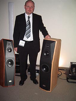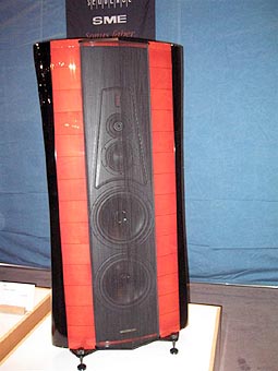 #5: No itinerary of high design would be complete without mentioning Sonus Faber. This time they outdid themselves with the wide but shallow Stradivarius Homage which clocks in at a few cents shy of $40,000/pr. I could easily comb my hair in the reflection of the deep lacquer finish - well, whatever hair I have left. This 3-way design in an elliptical enclosure features "2-pi radiation and a symbiotic tuning system". Each driver is loaded into a tunable cavity, open in the case of midrange and low-frequency drivers, sealed for the silk RingRadiator tweeter capable of a very broad bandwidth and wide dispersion. The 6-inch midrange was specially developed to exhibit the highest levels of dynamic linearity with low levels of coloration. Dual 10.25" aluminum/magnesium alloy woofers promise superior stiffness-to- weight ratio while the crossover points are at the nominal boundaries of the human vocal spectrum -ca. 300 and 4,000Hz. Great care was taken to develop a lacquering process that remains permeable by air and respectful to the nature of the wood as befits the vaunted Stradivarius name. |
