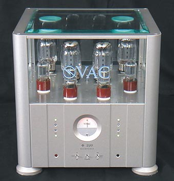 Hi-tech and tubes don't always go together - and I have never written about valve electronics before. Regardless, it wasn't lost on me that these marvels from the new VAC Phi range look like they belong in the Museum of Modern Art. They look even better in the flesh than the camera can capture. Move over B&O. If these amps sound half as good as they look, they may well be, as VAC claims, the best amps in the world! Kevin, I'd like to find out! The Phi 220 monoblocks and the Phi 110/110 stereo amplifiers, like their Phi Ultriode cousins, feature external power supplies; pi-filter dual-choke high voltage power; balanced inputs (with pin 1 lift switch); direct and isolated RCA inputs; zero global feedback; the iVAC data buss system; 12-volt triggers; output tube sentry & diagnostic system; ambient-light-responsive logo illumination; built in bias meter; triode switch - and so much more. The 220 and 110/110 are beam-power units designed around the KT88 and now in production. |