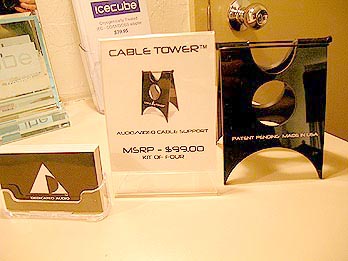 Dedicated Audio introduced their Cable Towers [4 for $99] which are Acrylic-based folded triangles with an upper channel and lower hole to allow for the convenient criss-crossing of loudspeaker cables and power cords. Especially synthetic carpets are known to contain static fields that interfere with the proper electromagnetic field development around cables. Hence cable lifters can make more of an audible difference than seems reasonable. DeVore Fidelity showed off their new Super Gibbon [$4,000/pr in standard finishes] which combines the petite profile of the Gibbon 8 with driver and cabinet technology derived from their statement Silverback Reference. |