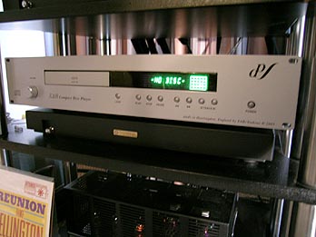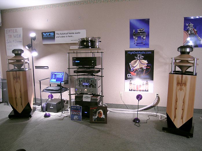 HighEnd Audio fronted their Duevel setup with both analog and digital, the former compliments of Dutch Pluto turntable fame (due for review by Jules sometime in 05), the latter via Vince Sander's VRS Systems hard-drive server. The omni-dispersion principle of the German speakers made for an exceptionally airy if ultimately slightly soft-focus sound which is the particular hallmark of such designs. Duevel's new battery-powered CD player made its US debut in a silent display [below right]. |