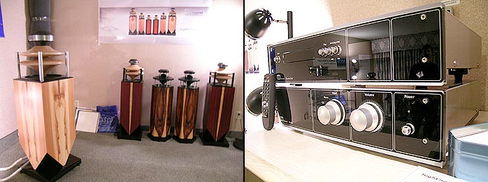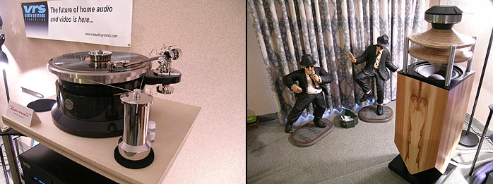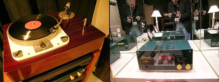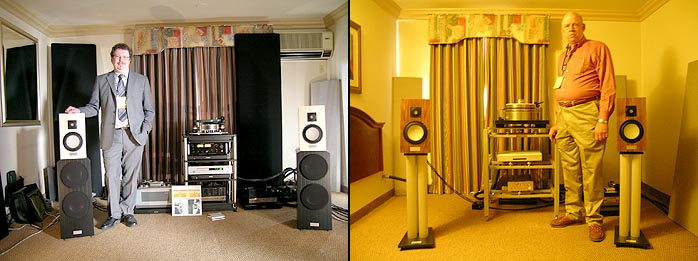 Sir Tim de Paravicini bowed his new Esoteric Audio Research turntable and a $4,000 tubed Yoshino CD player based on an Arcam platform, feeding into Mårten Design's new Duke Ellington $15,000 two-box full-range speaker. US distributor Dan Meinwald was especially excited about this new speaker model addition to the Swedish line since it allows a financially attractive 1|2 approach of starting with the $8000 Duke monitor and adding the dual-woofer Ellington base/sub later. Not being a vinylphile myself, Dan knew better than to get into any details pertaining to Tim's new deck but suffice to say, it seems like an all-out assault on the genre. |