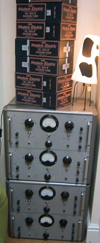 Hey, did you see the Solatron valve-regulated bench power supplies under that stack of Western Electrics? Did I mention WEs? Definitive supplies the real thing. No dodgy Chinese OEM clones but the actual 100% pure genuine article. And once you've heard them, it's a no-brainer. No choice, no competition. For a long time I've had doubts about the 300B SE thing. Turns out that the problem for me was not necessarily in the topology but that a lot of the limitations are based on the valve itself. To get the glory of that sound, there is only one road. It's called Western Electric. Simple as that. |