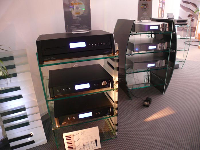 No sooner said than the alphabetical progression gets us to Crystal Cable, with Gabi van der Kley's Arabesque loudspeakers and her new, yet nameless equipment racks available in a number of trim options including carbon fiber, wood, glass and decorative 'piano' panels. |