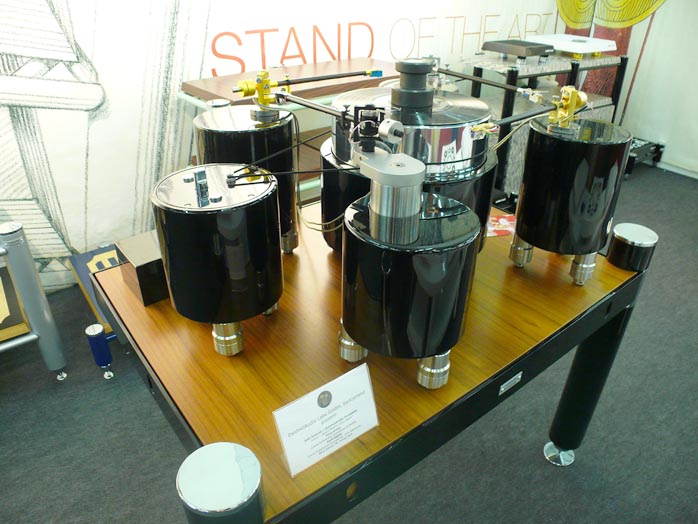 Da Vinci Audio Labs' maximally mondo quintuplet-pod turntable was not that. But before you suspect this particular theme had hit any ceiling yet, Suono i Communicatione's even better-looking giant Klimo table (formerly Angelis Labor) still awaited. Patience, grasshopper. Eyes always bigger than mouth. |