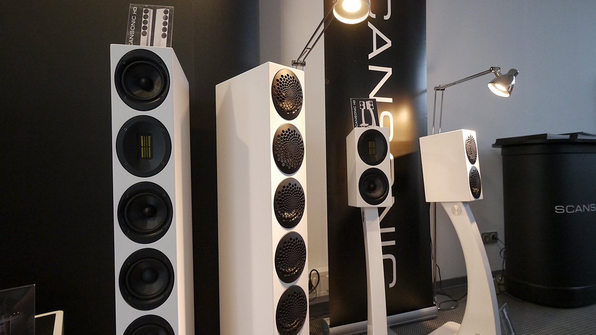 Hitting my looker category hard were these Scansonic models with narrow baffles, picturesque grill perf patterns, ribbon tweets and, vitally...