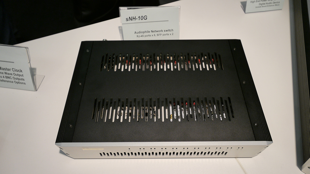 SOtM statically demo'd the new sNH-10G 'audiophile' network switch which won't replace your router but sits between it and your streaming source; and...