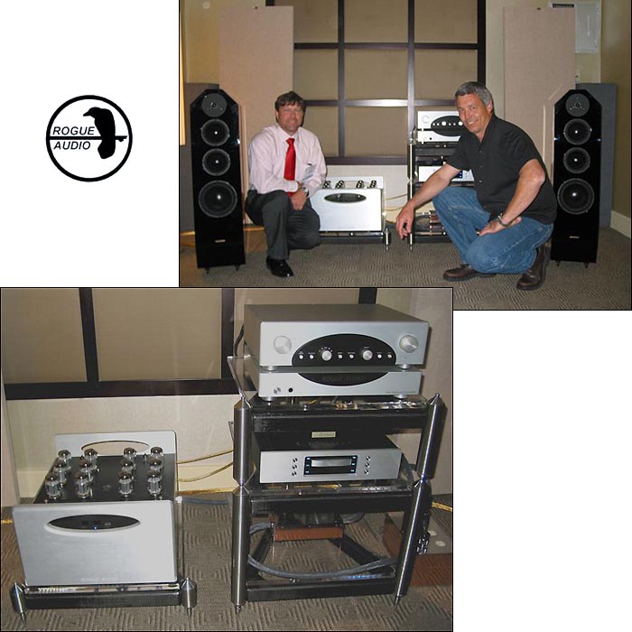 | Likewise, Rogue's Mark O'Brien featured his mighty Zeus power amp in tandem with an impressive new statement preamp, the $7,499 two-chassis Hera -- breathtaking in its clarity, sweetly layered midrange veracity and graceful resolution -- driving the full-bodied Eggleston Rosas to impressive SPL levels, with dynamic realism, pinpoint control and intoxicating levels of linearity and detail. In another room, those beloved high-end audio vaudevillians, loudspeaker icon and straight man Richard Vandersteen and his long-time comic foil, retailer John Rutan of Verona New Jersey's Audio Connection, produced their customarily flawless soundstaging, showcasing the remarkable Vandersteen 5As in tandem with Audioquest neurologicals, which simply wipe the floor with most of the statement loudspeakers I've heard costing many times as much - and this demo was no exception. |
