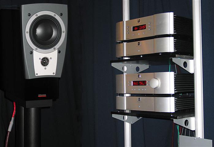 Well, it would be hard to imagine a better sounding speaker than those I heard in this room, pulling off a remarkable variation on that old schoolyard game of where's the subwoofer? Well, there wasn't any but I didn't meet anyone over the course of the show who felt shortchanged by the astonishing bass, midrange layering, clarity and linearity of these speakers. And soundstaging? Forget about the speakers disappearing. The whole damn room disappeared! I had been hoping to hear the C1 with a really high powered amp but I never expected anything as balls to the wall yet refined as the Simaudio W-7M monoblocks, a fully balanced differential design with seemingly limitless reserves of current and dynamic headroom, which are rated (and pretty | ||||||||||||||