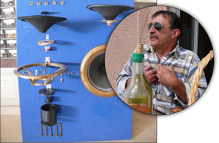 | It's hard to imagine today that Bernard ever sang solo soprano in a chorus. Well, that was before his voice dropped. He did continue as solo bass afterwards. He also played piano and pipe organ. But that's the past. The present -- say sometime in the first quarter of 2008 -- will see something else than his voice drop: price. Salabert is preparing to launch the present 8-incher in a ferrite motor version with stamped steel basket to attenuate the retail price below 200 euros per unit. Everything else -- cone, suspension, voice coil, efficiency -- will remain identical. "There's a simple trick not practiced elsewhere that produces astonishingly good results from ferrite magnets. This saves a lot of money over my bronze/Alnico drivers and will broaden the appeal of our PHY products." That's terrific news both for DIYers and manufacturers who already knew about PHY but had written their products off as too expensive for their applications. It's the same PHY for a lower fee. That even rhymes. How about zat? |