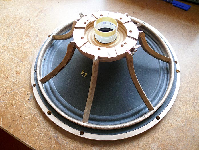"I saw all the good drivers disappear from the catalogues at about the same time. Does that strike you as coincidence?" When Supratek's second owner reached retirement, Salabert approached him with a buyout offer but was outbid by a team which managed to crash the company within two years (it was revived later). Seeing the last two little companies making high-efficiency wideband drivers lose traction in the market; and knowing who had wound the voice coils for Supratek's founder, something the second owner no longer knew; Salabert made it his mission to step into the created void. While the last reissued Altecs disappeared and with it, certain knowledge acquired in the preceding decades, Bernard Salabert returned to making "good units". It meant articulated paper cones sourced from the old-timers who had built the original drivers for Audax, Siare, Triangle and other legendary old French transducers before the offshore misery began. It meant Talc-impregnated latex suspensions. Alnico 5 Alcomax center rather than circumferential magnets. Then he added ingredients not used before: Bronze baskets and massive dispersion rings. Vellum formers instead of Kapton. And voice coils wound on his own machine, with 0.125mm silver wire wrapped in 15 micron continuous silk. "Our unique bronze mounting rings minimize border effects with their oval profile as well as acoustic emissions from the outer part of the suspension which is in phase opposition. More, it is a way to add mass and rigidity for the mobile equipment to get the most stable reference possible. For that you need to be very rigid and achieve the greatest possible weight ratio between moving and stationary mass. Bronze further is amagnetic and beautiful. When you listen to music at a realistic level (80 to 90dB), 92% of the movements with our efficient cones are less than 4 micrometers. When the whole cone can move 40 to 400 microns however as it does on a lot of commercial speakers, there is huge intermodulation and absorption to pay. People who judge a drive unit's action with their eye (which most of them do) are utterly fooled. The true quality of a drive unit lives in those 92% which cannot be seen without a very large microscope. It is not in the big slow movements made to try to reproduce the very low frequencies that one discovers the true quality of a driver." "About good drive units in general, it's really very simple. Physics tell us that we must have very light moving mass since mass operates as the square of the inertial position (in fact square + 1) so you can never compensate by magnetic field strength or amplifier power. This becomes even more important when you listen to music. Music, on average, is a mix of 30% sinusoid and 70% very steep short signals (impulses, transients and such). If a sinusoidal wave is easily reproduced, transient spikes are far more difficult to render properly. For that the mobile equipment (cone + spider + leads + voice coil) should have an infinite slew rate i.e. zero mass. That's impossible of course but you must come as close as possible to 0. You need a very light cone that is rigid enough and features progressive fracturization in an hyperbolic-exponential profile. Only paper with long and short fibers can accomplish that, plush a small-diameter voice coil where one layer is inside and one outside of the former to transmit the movements of the coil with the fewest possible losses (I use impregnated vellum). It is simply in respect to basic PHYsical laws that I made these choices, not to return to the roots per se. But surely it is not a random coincidence that people from the 30s to 70s made drivers like this. They were not stupid as it seems a lot of people today like to believe. These physical laws haven't changed. Obeying them once again not only makes for better drive units, it is also a very nice way to keep alive the knowledge about these technical matters." |
