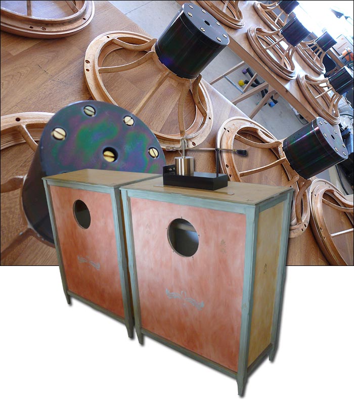 | anything but kindly predisposed to the way things used to -- and should continue to -- be made. Going back 30 years to the beginnings of high fidelity in France, the days of Hiraga, Piel, Mahul and others when he ran a hifi store in Montpellier, he perceives a concerted effort to strategically eliminate the traditional 1930's craft of vintage drivers in the Western Electric/Altec vein for inefficient, multi-way speakers in small boxes which could be sold to the unsuspecting masses under the added guise of hi-tech driver materials and implied progress. | ||||||||||||||||||||