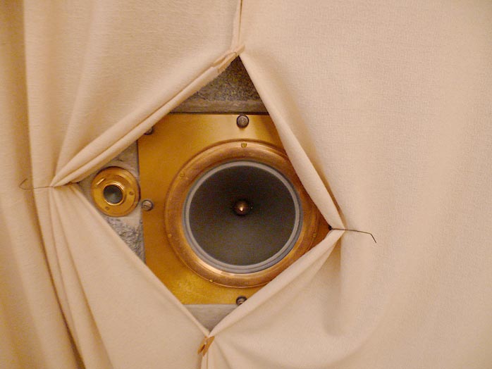 One can also hear how uncompressed low frequencies ridicule even absolutely massive damping. As I heard for myself, such sound waves propagate unhindered through the walls of a large space with non-parallel walls to literally vibrate the concrete (the one-foot thick ceiling alone contains 12 tons of sand). Any illusions of successfully eliminating a driver's rear wave with a speaker cabinet as is conventionally attempted are profoundly demolished in just a few short minutes of a Salabert demonstration. |