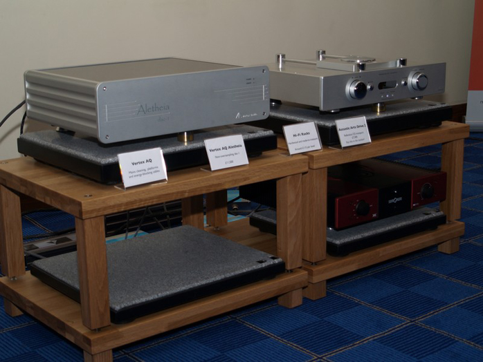 Audio Works: On display was the MusicWorks ReVo equipment support which was as transparent as we'd all like our components to be. So were the speaker stands.