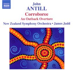 "Rising Sun" is an amusing dance of the macabre before daybreak and what could be more bone-baring than a piano with trumpets? "The Morning Star" is a snappy wake-up call for all forest crawlies and I bet you'll hear the rattling snake among them. As I've hinted at, "Procession of the Totems" and "Closing Ceremony" are the wild card with high impact. Be forewarned of the wild bull charging performed by the bullroarer, an aboriginal instrument that gives intense vibrato sometimes used to demonstrate the Doppler effect. The Outback Overture of 1954 was composed for a royal visit. Antill did not follow suit with pomp and circumstances but wittily disguised English folk songs with modern harmonies and (Australian?) humor. I was a little surprised that this was performed by the New Zealand Symphony Orchestra instead of an Australian orchestra. Under the baton of James Judd, it is unquestionably a command performance particularly with the Corroboree, an extremely challenging work in its own right. Forty minutes of orchestral showpieces with picturesque moods and imagery require no less attention to detail than a profound symphony. Judd and his NZSO did that with communicative spontaneity and technical brilliance. Now, who says you can't impress your friends with a Naxos audio demo? |