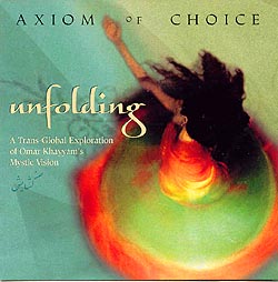 | Formed in 1992, the Persian emigré formation "Axiom of Choice" is led by Loga Ramin Torkian, artistic director and guitarist/composer. It includes the mesmerizing Iranian vocalist Mamak Khadem who's performed with Hans Zimmer, Jamshied Sharifi, Tulku, Omar Faruk Tekbilek and ex-Tangerine Dream member Paul Haslinger. Her studies in Bulgarian and classical Indian styles outside her native repertoir expand the stylistic scope of the band's mostly Iranian focus. The band's discography includes 1994's eclectic Beyond Denial (XDot 25], 2000's far more romantic Niya Nesh [Narada] and today's Unfolding. The remaining core team of wind player Ruben Haratoonian (clarinet, duduk and zurna) and percussionist Mammad M. Zadeh here adds Martin Tillman on electric cello and bass, Simeon Pillich on acoustic bass, Andre Harutyunyan on percussion, Shahab Fayyaz on ney, Saied Farajpouri on kemanche, Yatrika Shah-Rais on harmonium and Bikram Gosh on tabla, Using quattrains from Omar Khayyam's mystical vision to set the energetic space of each track, Unfolding opens with "Mystics and Fools" to the following stanza: |