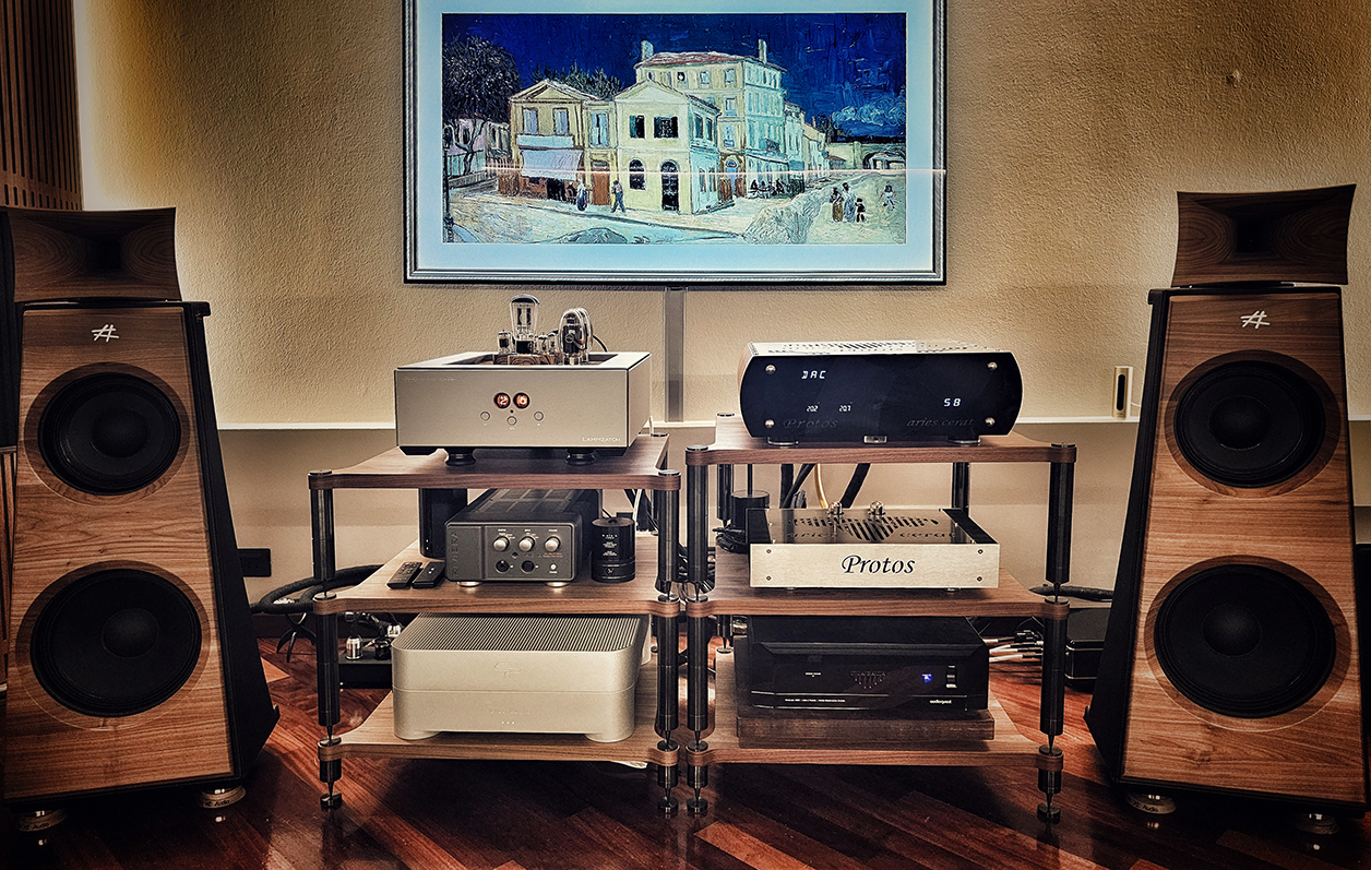 After inserting a new amplifier into a familiar system, we typically expect to notice obvious things first such as changed bass level, treble energy or dynamic slam. Those are the usual headline variables even if also easiest to misjudge because they can be influenced by level matching and short-term excitement. With Protos, the first perceptual shift was not more bass or less treble but the shape of its silence. I'm not implying a lower noise floor in the measured sense though the -90dB spec already off the standard PSU is respectable. I mean silence as a structural musical element which carves out space, implies recording venue, affects how sounds materialize rather than squeeze out of a speaker. With some electronics, clarity implies sharpened edges, illumination by means of increased contrast occasionally to the point where the musical picture renders like a photograph taken under hard studio lighting. Not with Protos. It did not rely on artificial resolution tricks but instead seemed to remove a layer of previously unheard subtle compression, liberating an audible if minuscule smothering of low-level information which also intensified dynamic contrast at quieter playback levels than I'm used to. Consequently, images became more three-dimensional not because they were bigger but because their light and shade were more faithful. A violin is not a line or dot but a body with a cavity, strings, a bow and a moving air column. A human voice is not a midrange but chest, throat, mouth, breath, diaphragm and lungs. Protos teased out those elements with unforced solidity. Unhindered, uncorrupted, intact and pure were adjectives that repeatedly came to my mind as I ran through my usual reference playlist.