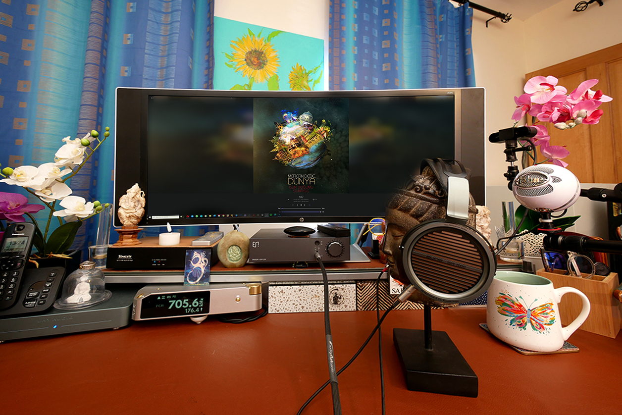 How the AR5000 compares sonically I cover in its own mini review. Here we see how it compares visually: same build, different colour scheme, different material mix for the pads, no hard case which here shows beneath the two aune, Meze 109 Pro in foreground.
