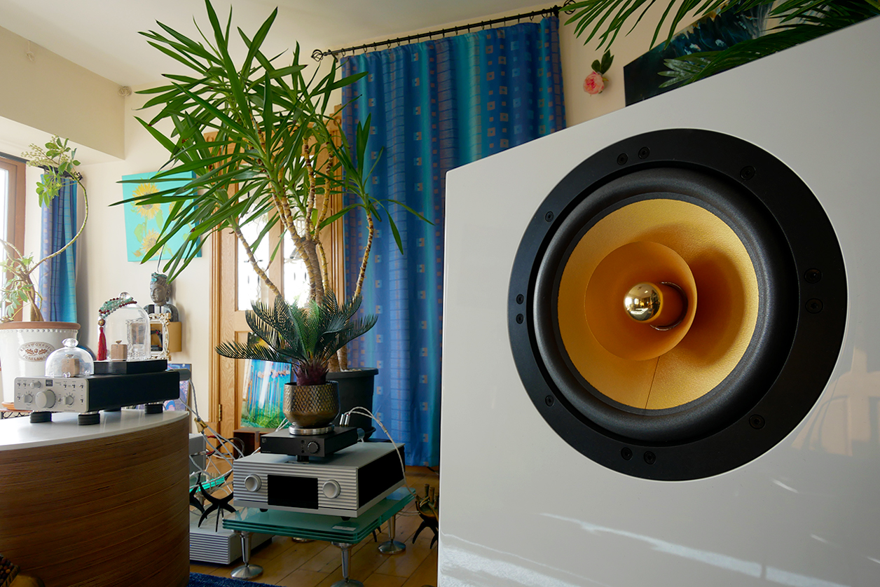 Monet meets Nenuphar? Kinda. Unexpectedly, my eyes cottoned to Monet's broad-shouldered profile with its puckered derrière more than Nenuphar's far more bodacious booty of copious depth. To be sure, I totally credit the white finish for that. Were these broadburgers shiny piano-black reflectors, I'd fancy them seriously less. I cannot with a straight face or pointy ears invoke memory for comparative specifics other than two particular items. 1/ as already stated, by being less ambitious on bass reach and apparently more self damped on control—here I'm referencing the very same Enleum AMP-23R as driver for both—Monet in my space played it more linear and balanced down low than Nenuphar. 2/ crack not of the bum but drum sort aka impact in music's power region was higher. Fare like the earlier Miles_Gurtu quasi drums'n'bass track came off more persuasive though to be fair, a darker slammier Zu Soul VI does that better still. Yet shift to acoustic chamber music à la earlier Tawabil Project and that assessment flips. Monet attended conservatory. Soul VI skipped class to hit the drag strip on a hot-rod dirt bike. Different education, different persona. Though Monet remains a basic squared-out box, the new gold decal and round not square basket rim give it a certain cosmetic extra I thought updates the Nenuphar-gen looks. Where Cube's accountant should whinge is that today's model situates beneath Nenuphar on złoty when my gut instinct and memory suggest that for performance, I'd favour the trimmer painter over the looser lotus.