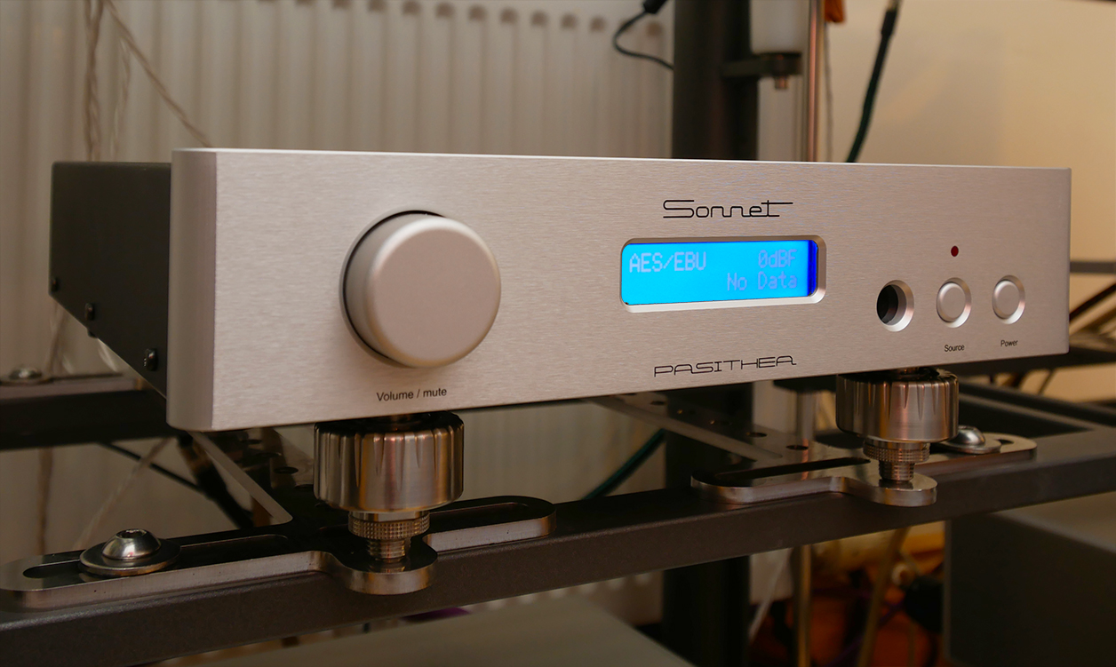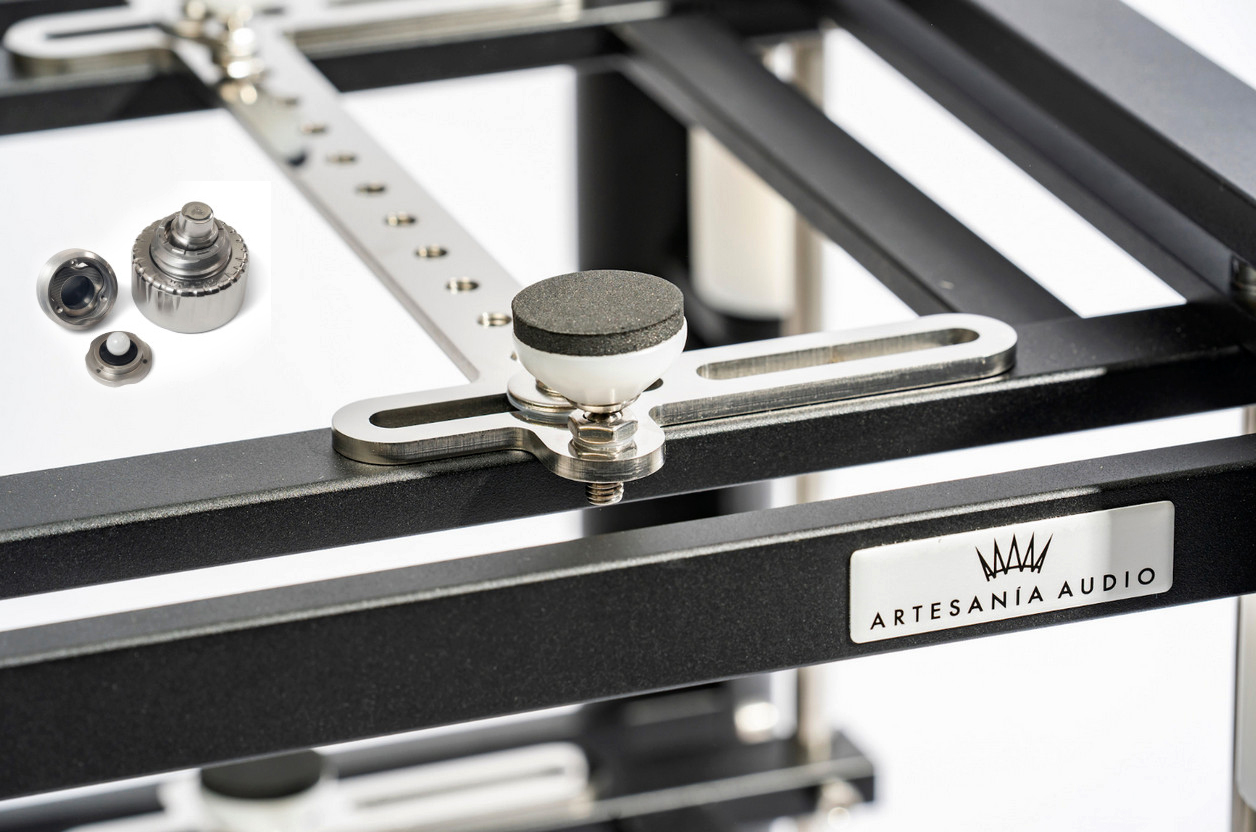 Forget the leetle grey cells on the Orient Express. No murder by the dozen today even though some micro resonances will expire. This comes from how easily the Nano isolator from Carbide Audio—a single ball-bearing affair—replaces the stock couplers of the Exoteryc rack from Spain's Artesanía Audio. All it takes is the right thread adapter. Et voilà, now my Sonnet Pasithea DAC and direct-coupled WE 300B in Vinnie Rossi's L2 Signature see even fewer vibrations to tickle tubular microphonics or fussy digital circuitry.