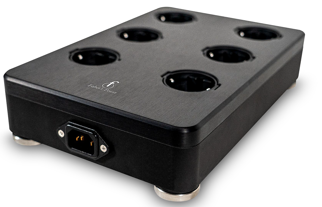 The La Potenza power distributor is a beautiful example of mechanical engineering, with its three parts CNC'd from aluminium alloy with Oyaide and IeGO components for best conductivity and custom stainless-steel footers with rubber O-rings for vibration isolation. The internals aim to minimize EMI and RFI interference, reject electromagnetic noise and reduce losses. The conductors are guided and kept separated by grooves machined into the case. The power distributor is entirely devoid of electrical components along the current path, as Fabrizio believes that this is the only way to preserve the dynamic and timing consistency of the signal unlike other approaches such as filters, regenerators, isolation transformers or batteries.