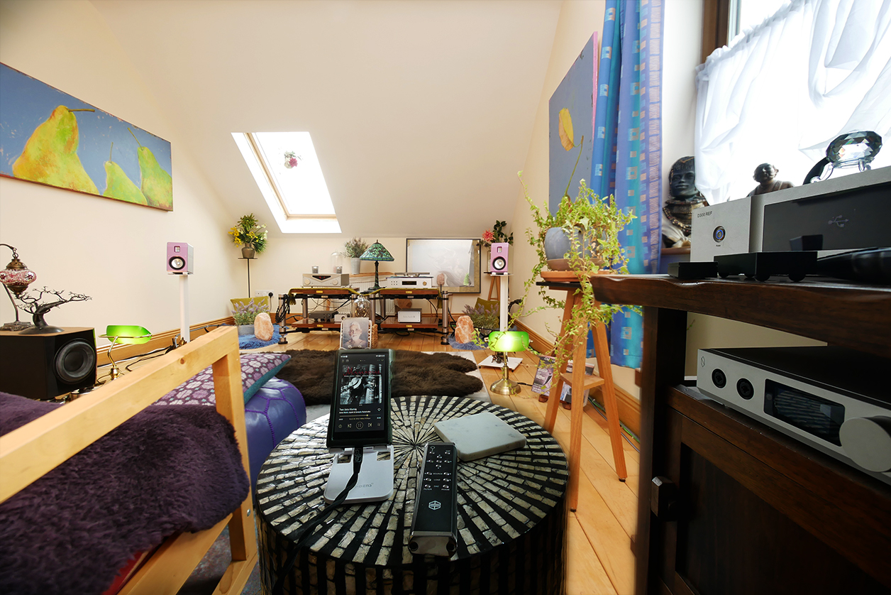 This one is a fixed 80Hz/4th-order analog Linkwitz-Riley filter which Pál Nagy of icOn preamp fame built for me. It segregates the signal path into +80Hz to an Enleum AMP-23R driving puny 4" 2-ways with hidden isobaric 4-incher; and -80Hz to a dual 9½" Dynaudio force-cancelling active subwoofer. As such it's an influential point of passage for the entire bandwidth. Preceding it is a Vinnie Rossi L2 Signature preamp with Elrog ER50 direct-heated/coupled triodes; a Cen.Grand DSDAC 1.0 Deluxe resampling all to DSD1'024; a Soundaware D300Ref USB bridge; and at the very start so right next to my Ikea rocker a Shanling M3 Ultra serving as microSD USB-C digital transport on battery power.